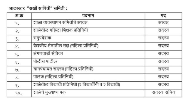 मुला-मुलींच्या सुरक्षिततेसाठी निकोप आणि समतामुलक वातावरण निर्मितीसाठी 'सखी सावित्री' समिती गठीत करण्याबाबत शालेय शिक्षण व क्रीडा विभागाने मार्गदर्शक सूचना जारी केल्या आहेत.