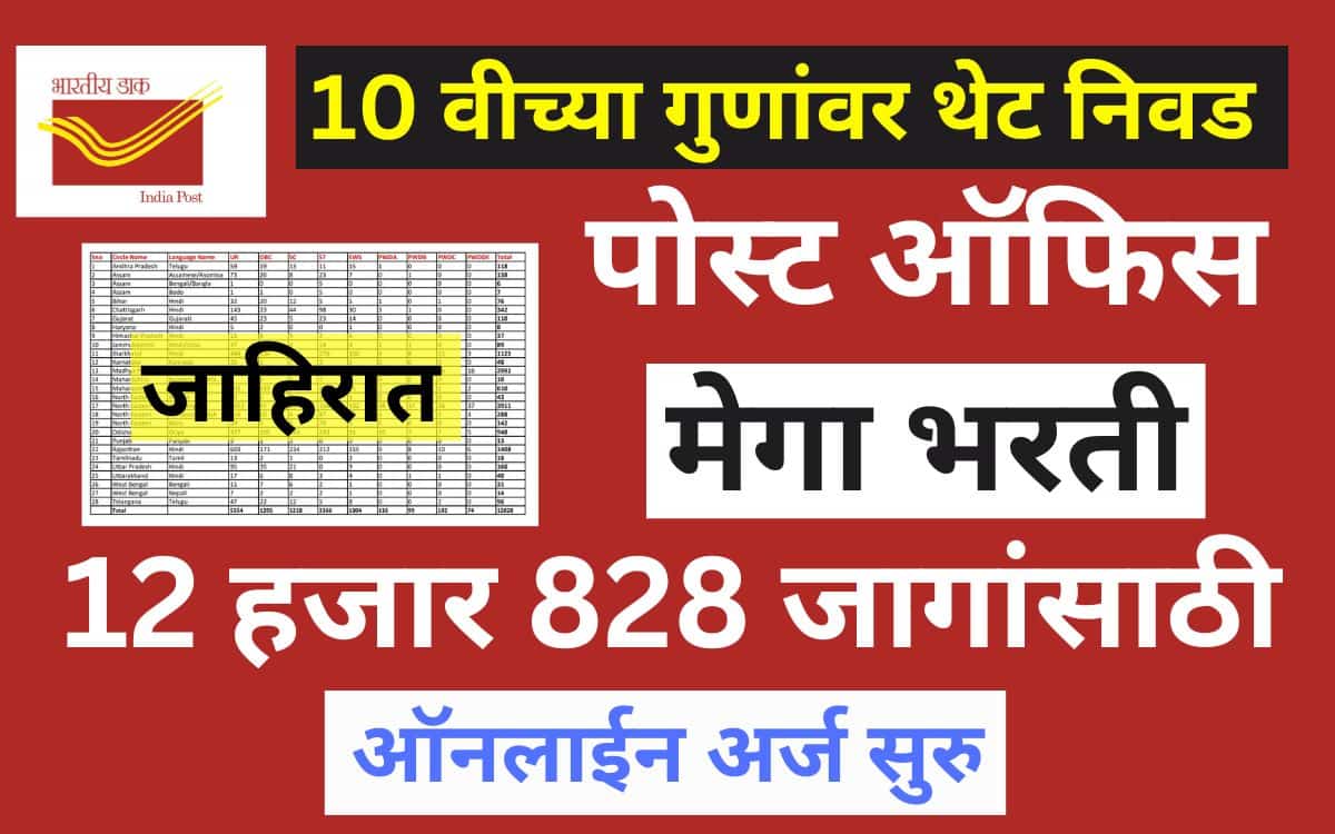 पोस्ट ऑफिस मध्ये 12 हजार 828 जागांची मेगा भरती