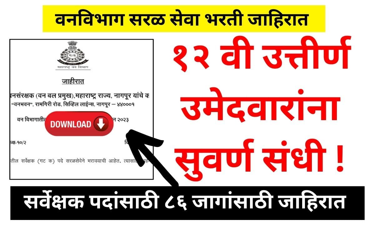 Forest Department Recruitment 2023 : सरकारी नोकरीच्या शोधात असणाऱ्या उमेदवारांसाठी आता वन विभागाने सरळ सेवा भरतीची जाहिरात प्रसिद्ध केली आहे, त्यानुसार वन विभागांमध्ये 2 हजार 288 जागांसाठी भरती होणार असून, त्यामध्ये सर्वेक्षक (…
