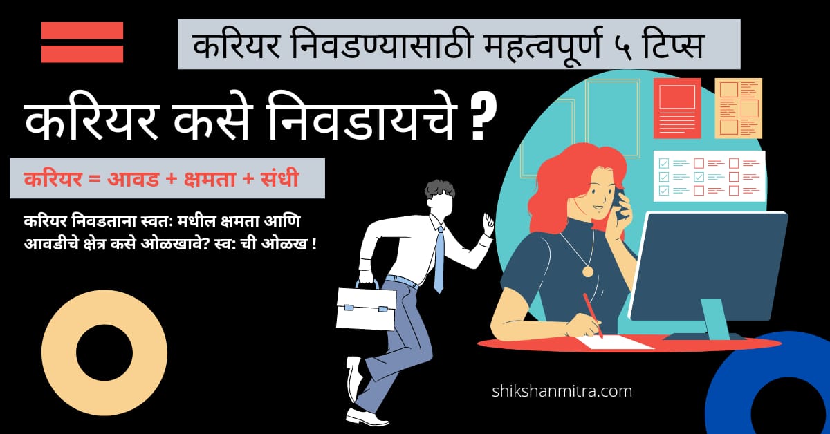 प्रत्येकाच्या आयुष्यात एका टप्यावर आपल्याला योग्य करियर चे क्षेत्र निवडावे लागते. त्यामध्ये तर बहुतेक जण पारंपारिक घराणेशाही मध्ये पिढ्यानपिढ्या चालत आलेले व्यवसाय निवडतात. डॉक्टर च्या मुलांनी डॉक्टर व्हावे, घरामध्ये आई वडिलांना सरकारी नोकरी असेल तर मग माझा पण मुलगा सरकारी नोकरीला लागावा, घरांमध्ये चालत आलेला पारंपारिक व्यवसाय असेल तर मुलांनी तो व्यवसाय पुढे चालू ठेवावा. अशी एक प्रकारची मानसिकता झालेली आहे. खूप कमी पालक आपल्या मुलांच्या कलेनुसार आवडीच्या क्षेत्रात करियर करण्यास सांगतात. पण आता पहिल्या सारखे राहिलेले नाही. कौशल्य आधारित शिक्षण आणि नोकरी व्यवसाय हा मुलांच्या मध्ये असलेले स्कील , क्षमता त्यानुसार भविष्यात यशस्वी होता येईल.