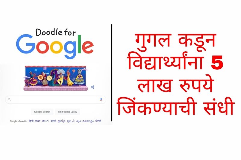 गुगल द्वारे भारतातील इयत्ता १ ली ते १० वीच्या शालेय विद्यार्थ्यांसाठी गुगल डूडल (Doodle 4 Google Competition) तयार करण्याची स्पर्धा आयोजित करण्यात आली आहे. विशेष म्हणजे ही स्पर्धा इयत्ता १ ली ते १० वी च्या सर्व विद्यार्थ्यांसाठी मोफत आहे. या स्पर्धेत विद्यार्थ्यांना ५ लाख रुपये व इतर बक्षिसे जिंकण्याची सुवर्ण संधी आहे. आजच्या विशेष लेखामध्ये Doodle for Google Competition 2022 ची संपूर्ण माहिती दिलेली आहे. तेव्हा अवश्य गुगल डूडल स्पर्धा समजून घ्या आणि आपल्या मित्रांना देखील ही माहिती शेयर करा.