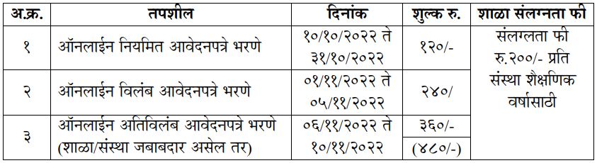 दिनांक १०/१०/२०२२ पासून ऑनलाईन आवेदनपत्रे परिषदेच्या https://www.mscepune.in/ व https://nmmsmsce.in या संकेतस्थळावर शाळांना उपलब्ध झाले आहे.